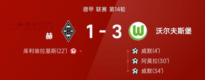 门兴格拉德巴赫1-3沃尔夫斯堡