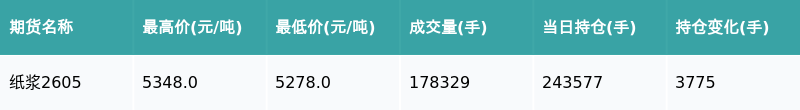 南财智讯2月26日电,盘后期货数据显示,上海期货交易所的纸浆主力合约收跌0.97%,收盘报5312.0元/吨,日内资金流入2055.59万元。其他相关指标见下表: